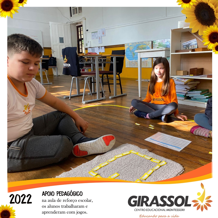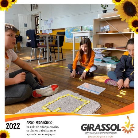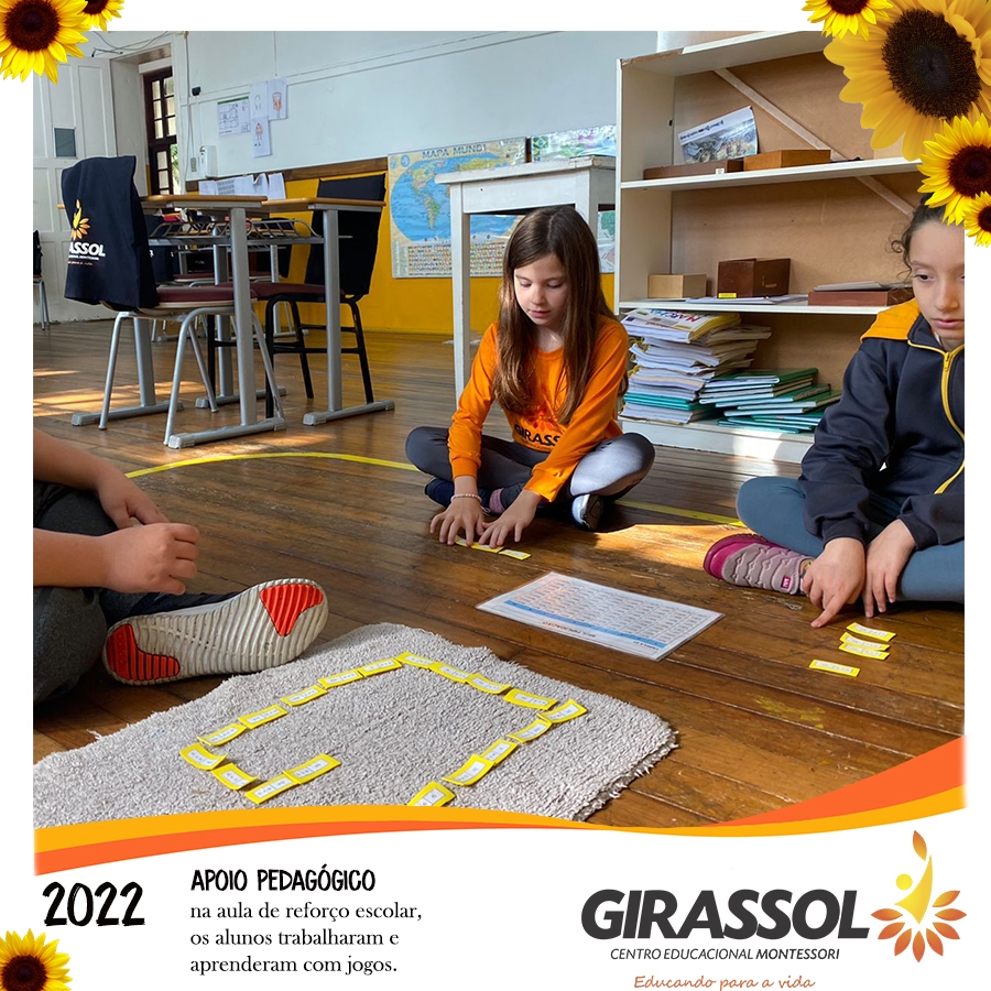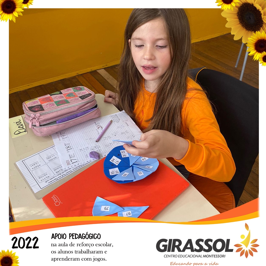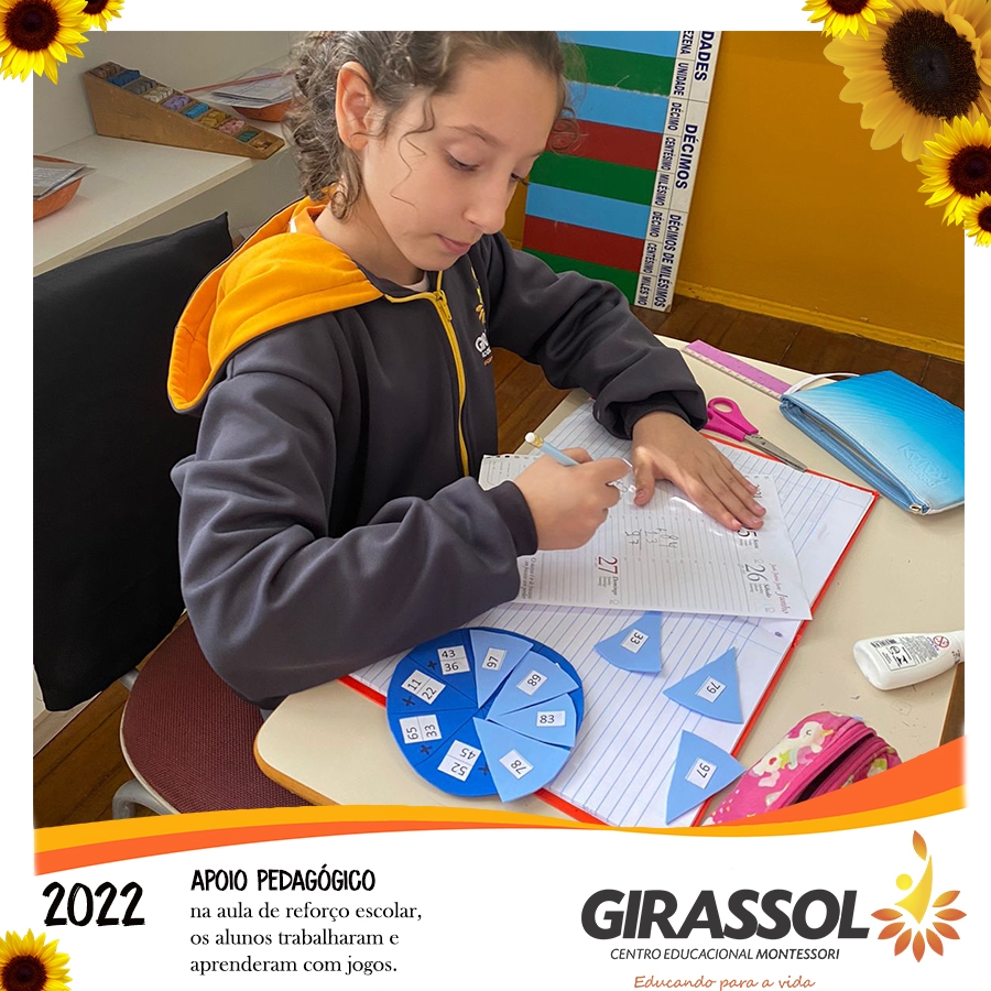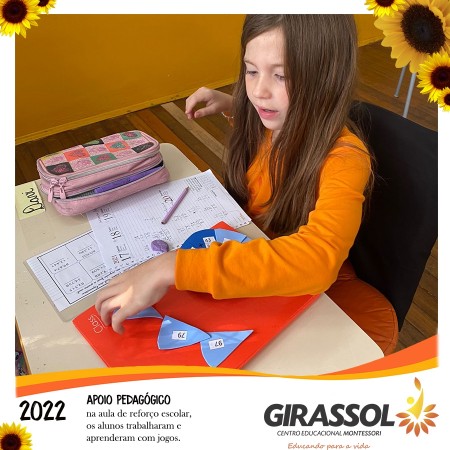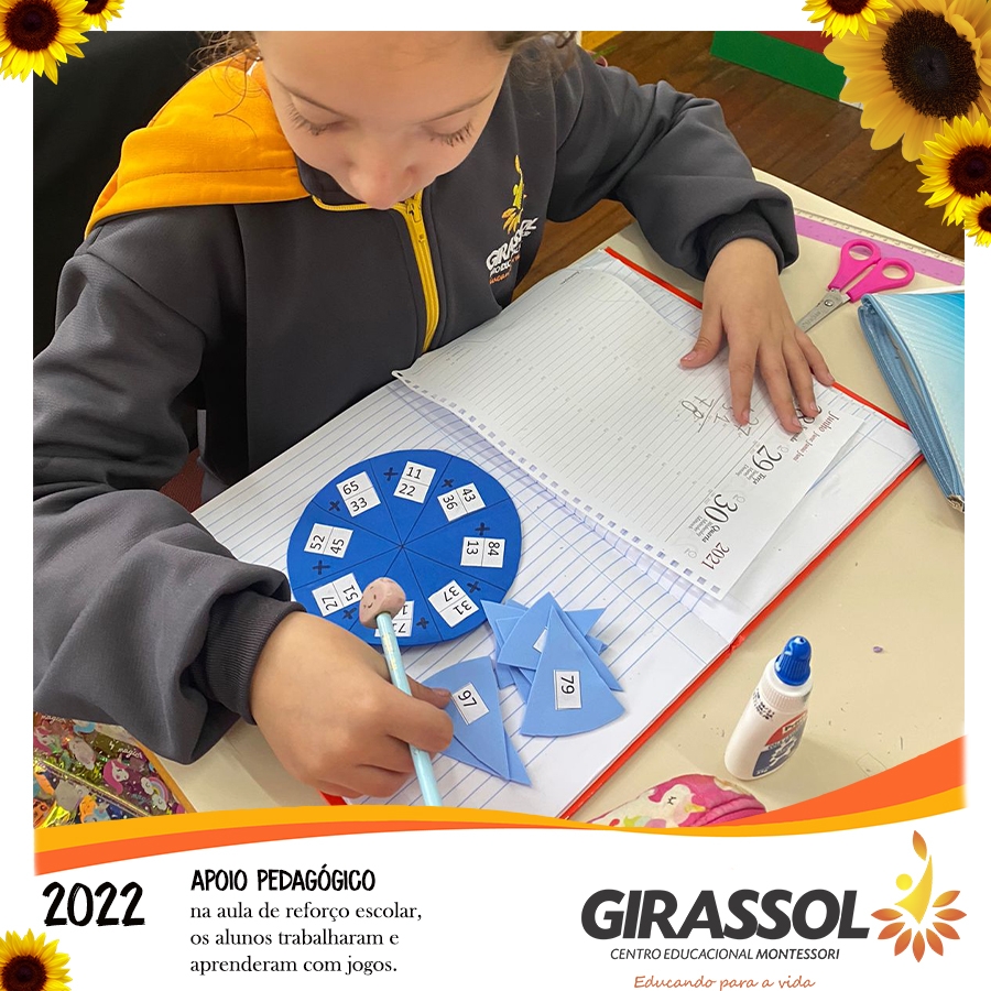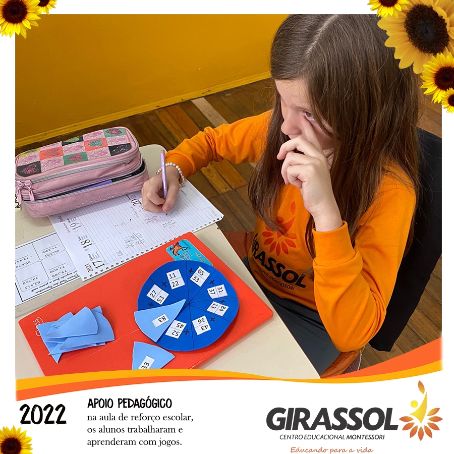 Na escola Girassol são oferecidas aulas de reforço escolar para os alunos que são identificadas pelos professores após avaliações que necessitam de um acompanhamento mais direto para reforçar alguma habilidade. Essas aulas não se tratam de um recurso tedioso sobre um assunto abordado em sala de aula, e sim, atividades preparadas por um profissional qualificado com abordagens de engajamento e estimulação, trazendo vivências significativas que possam contribuir com seu aprendizado.