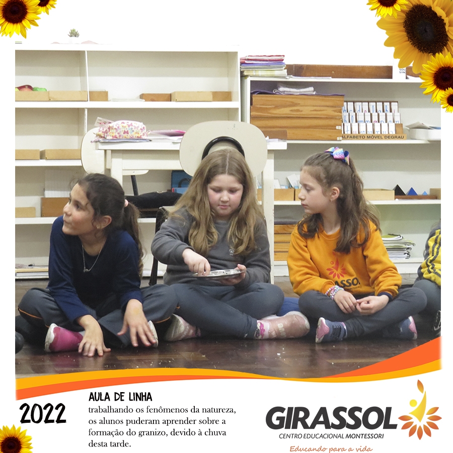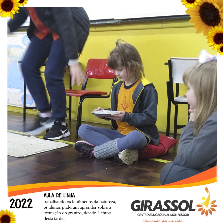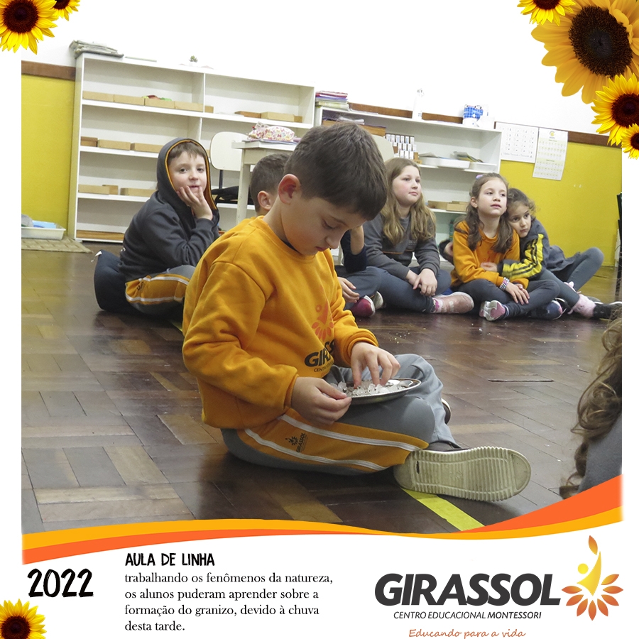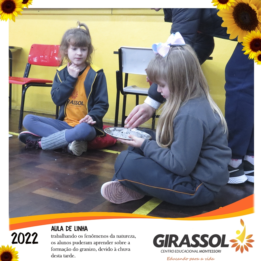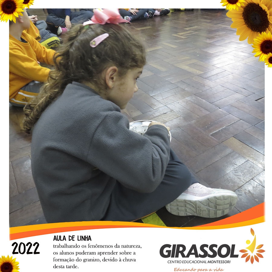 O conhecimento prático é uma das maneiras de ensino mais utilizadas aqui na Escola Girassol. Quem esteve fazendo uma atividade muito interessante foi o 1º Ano do Ensino Fundamental, que, com a chuva desta tarde, puderam aprender sobre os Estados Físicos da Água e a formação da chuva de granizo de forma prática.