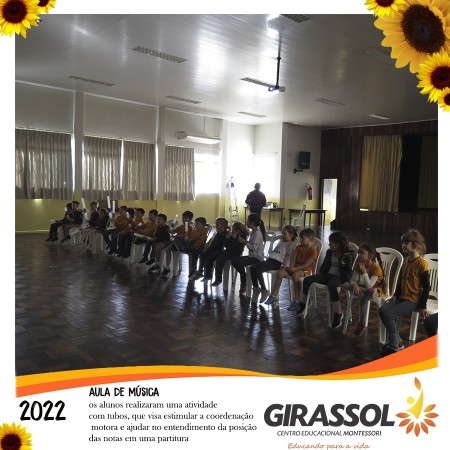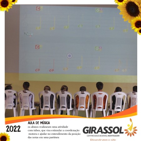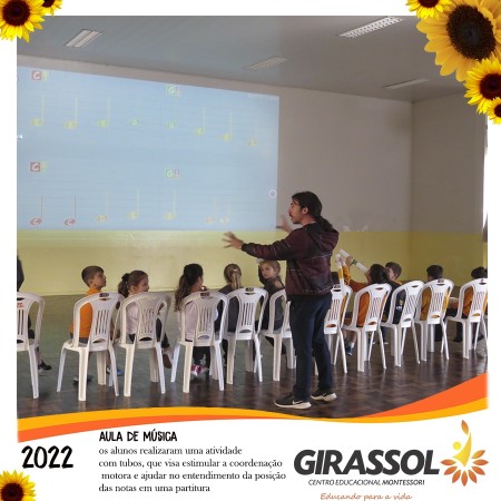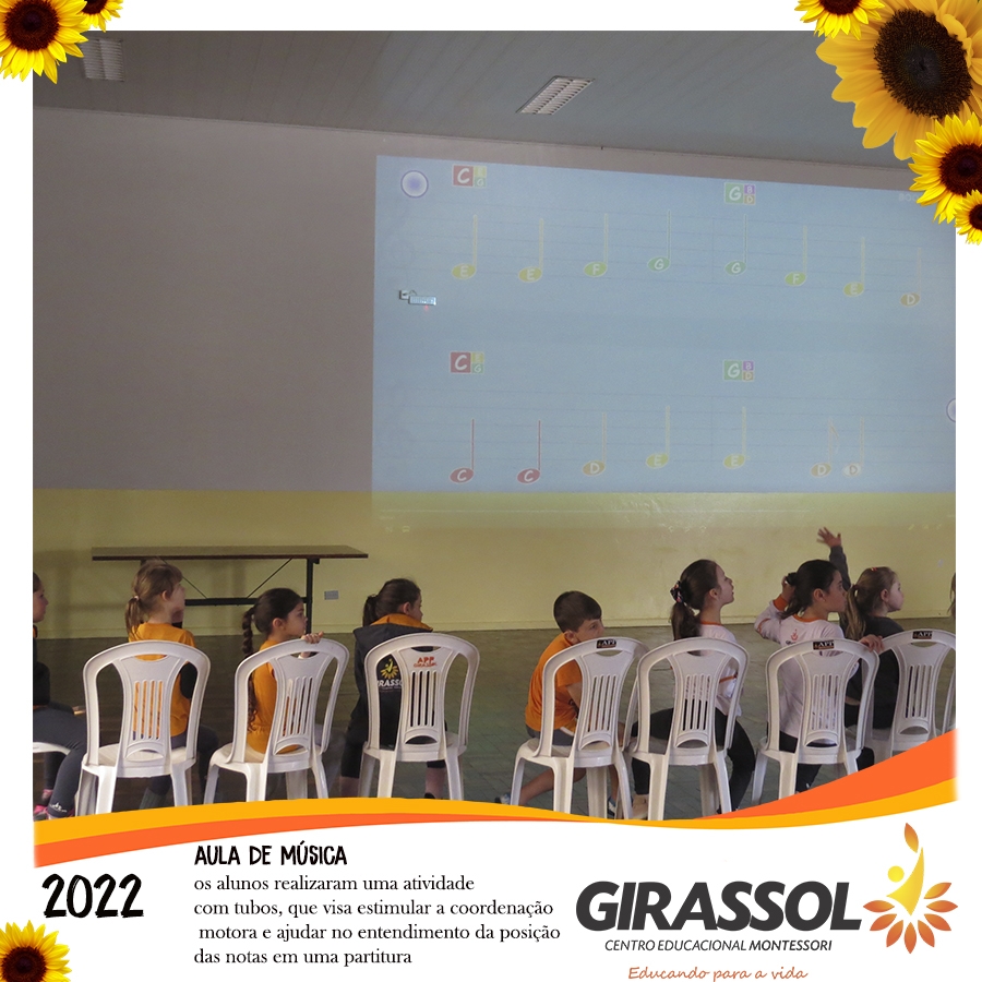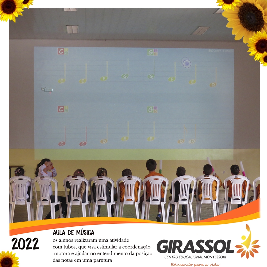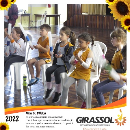 A música é reconhecida por muitos pesquisadores como uma espécie de modalidade que desenvolve a mente humana, promove o equilíbrio, proporcionando um estado agradável de bem-estar, facilitando a concentração e o desenvolvimento do raciocínio, em especial em questões reflexivas voltadas para o pensamento filosófico. Nas aulas de música desta semana, o professor propôs uma atividade com tubos para estimular a coordenação motora e ajudar no entendimento da posição das notas em uma partitura. Os alunos adoraram e aprenderam muito!