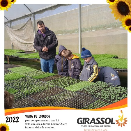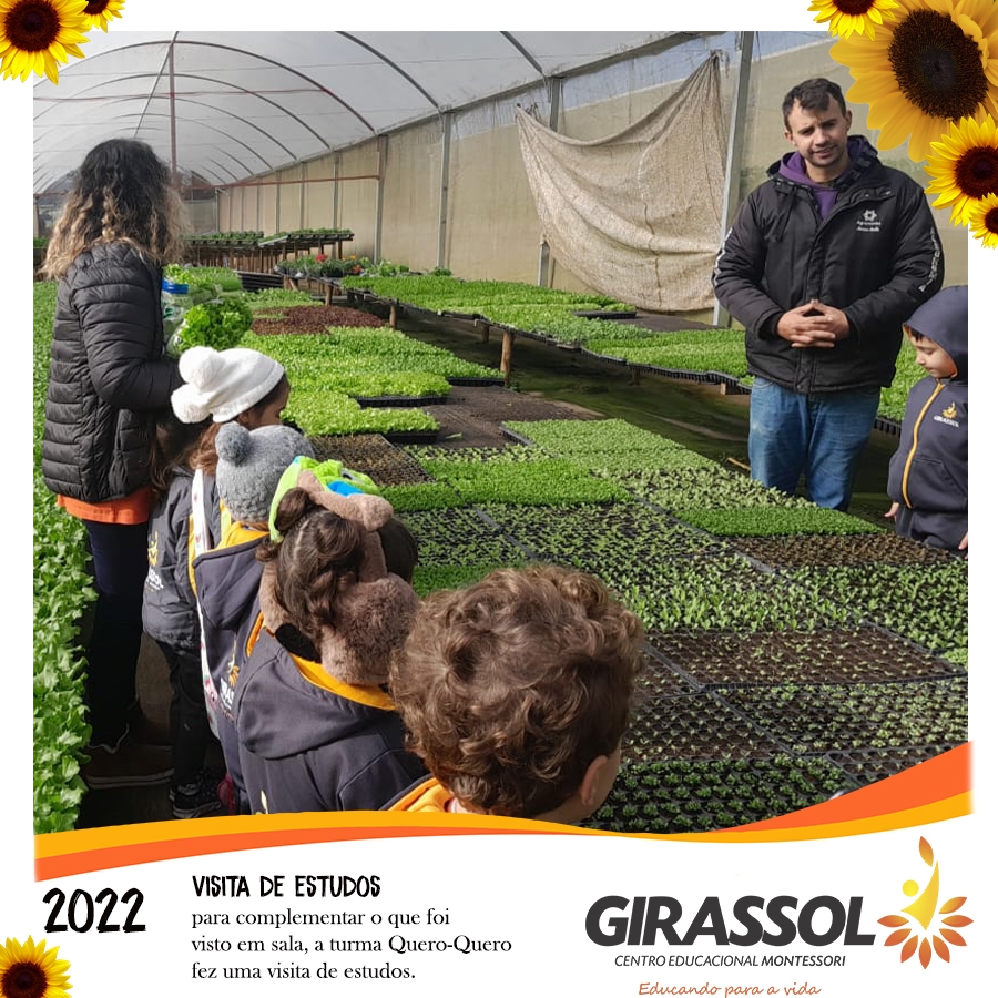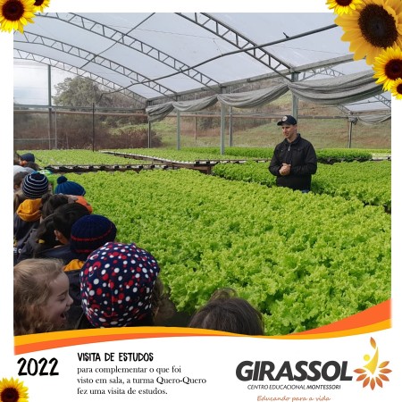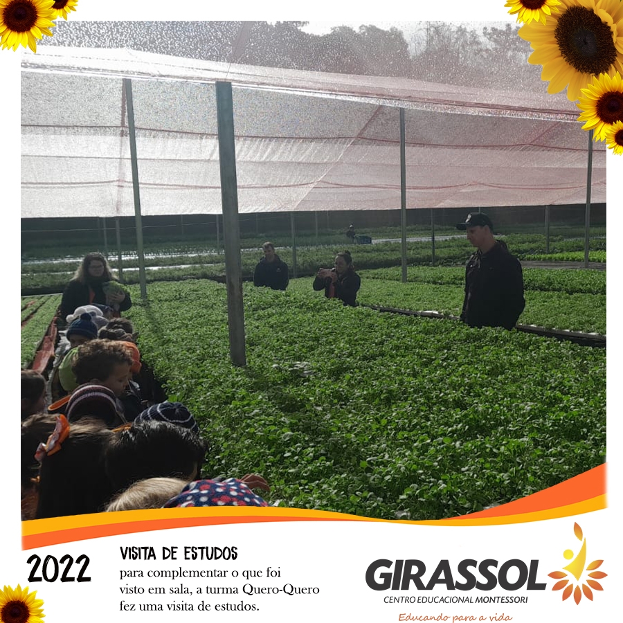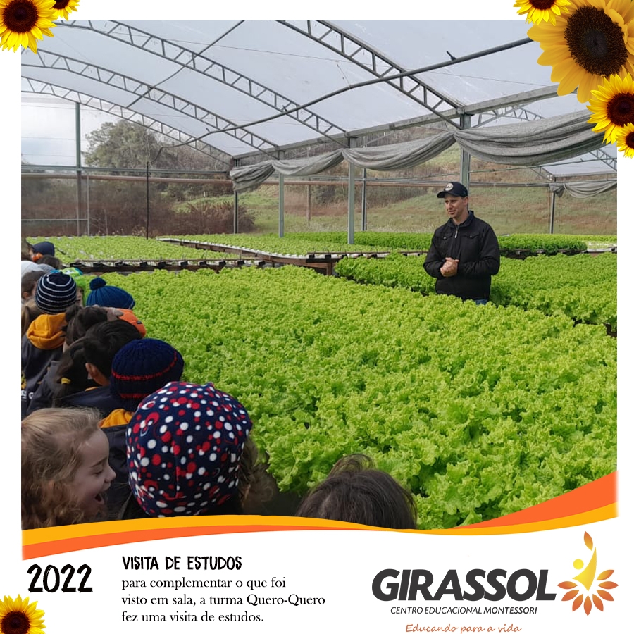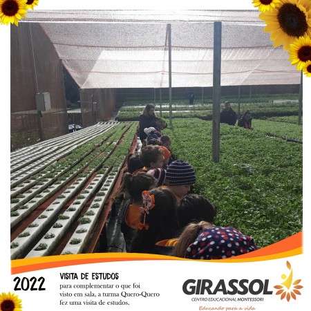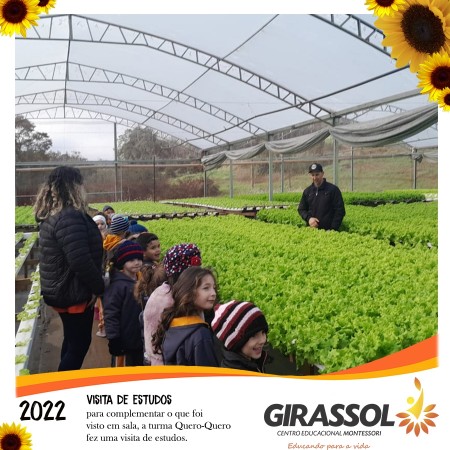 Ao desenvolver o Projeto de Educação Ambiental, as educadoras da turma Sabiá proporcionaram um momento de descontração e aprimoramento de aprendizagem aos alunos, oportunizando uma Visita de Estudos nas Hortaliças Stella, em Joaçaba. No local as crianças puderam conhecer como é realizado o cultivo das hortaliças, o local que são cultivadas, e todo cuidado necessário para o seu crescimento.Visitas de Estudo são práticas constantes aqui na Escola Girassol, pois além de complementar o conteúdo estudado em sala de aula, é considerado algo que enriquece o vocabulário cognitivo da criança. Agradecemos a receptividade o carinho com nossos alunos da turma Quero-Quero.