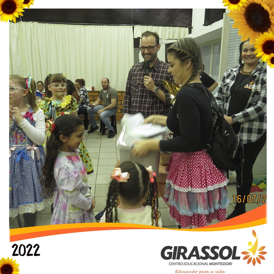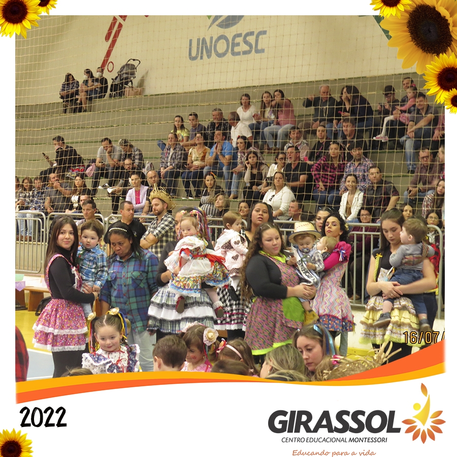No dia 16 de Julho aconteceu nas dependências do Campus II da UNOESC a Festa Julina da Escola Girassol, com a participação das famílias que prestigiaram seus filhos com muito carinho. Todas as turmas se apresentaram e encantaram o público presente. Agradecemos a parceria da APP e professores que organizaram um lindo evento para as famílias de nossa escola!