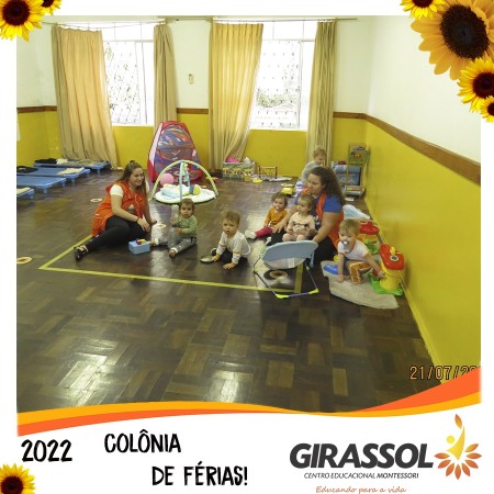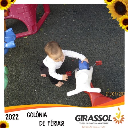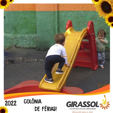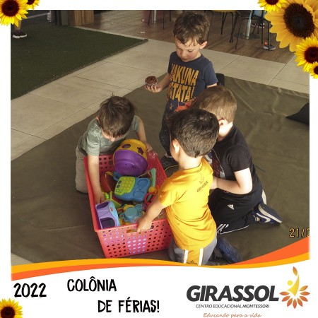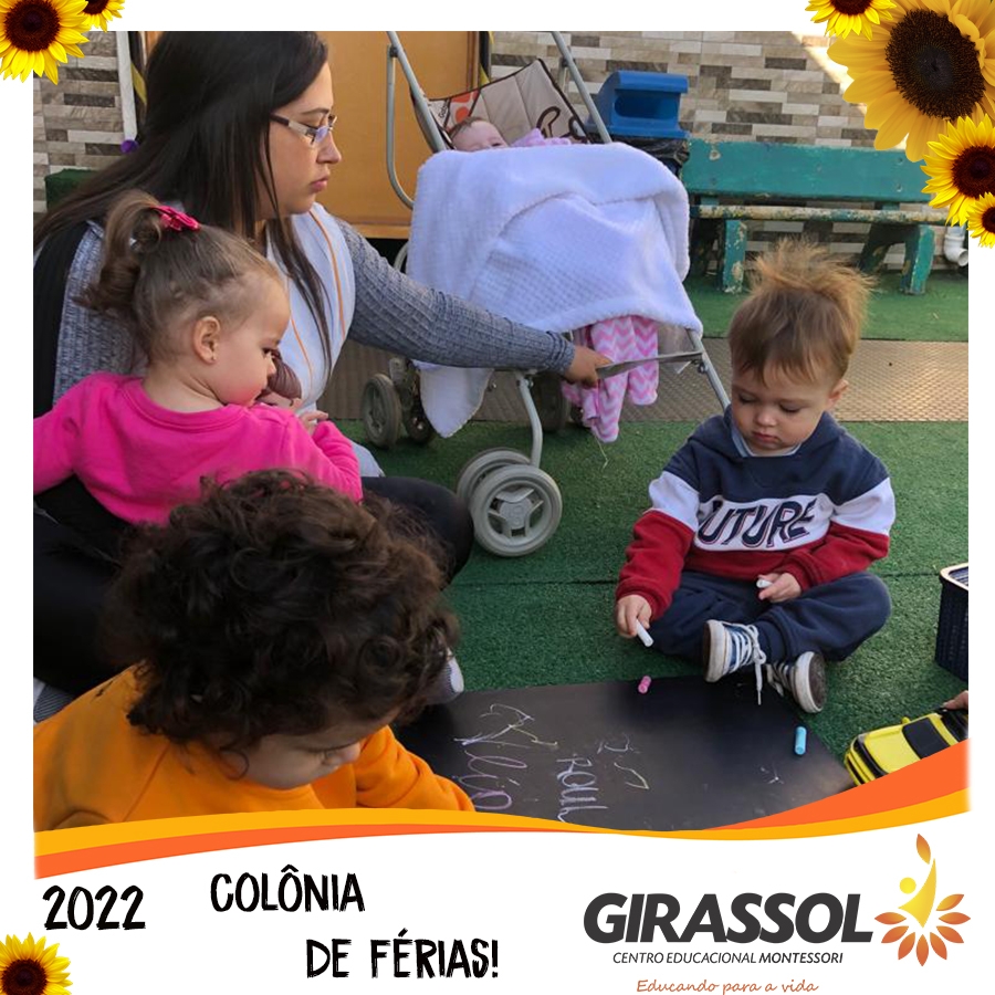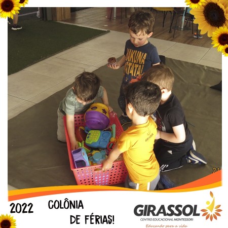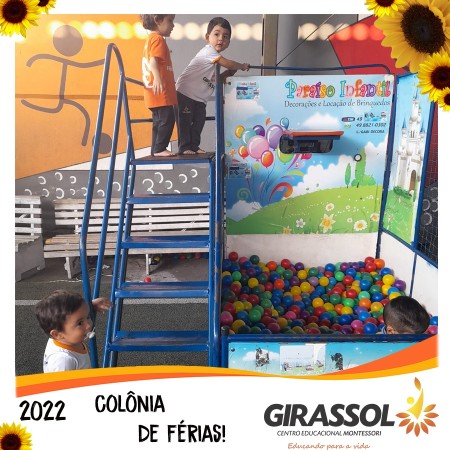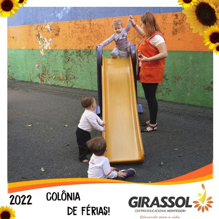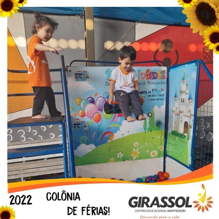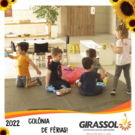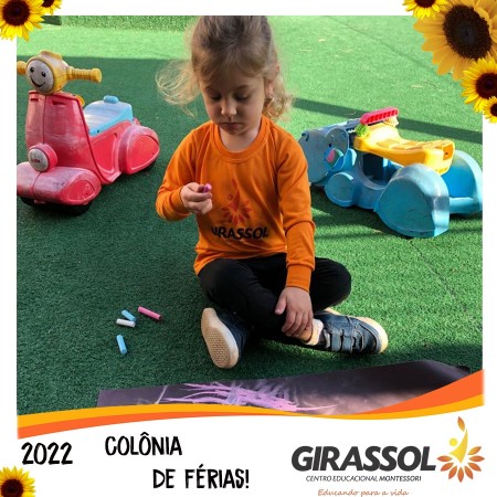 O Girassol - Centro Educacional Montessori oportuniza aos pais um espaço de atividades dirigidas para que seus filhos possam participar da Colônia de Férias na escola. São atividades totalmente recreativas, lúdicas e divertidas, com orientação de professores qualificados. As crianças se divertem e podem compartilhar momentos especiais com os colegas de outra turmas.