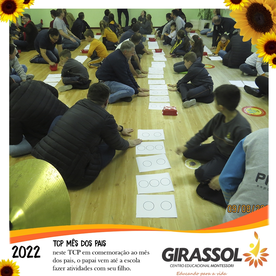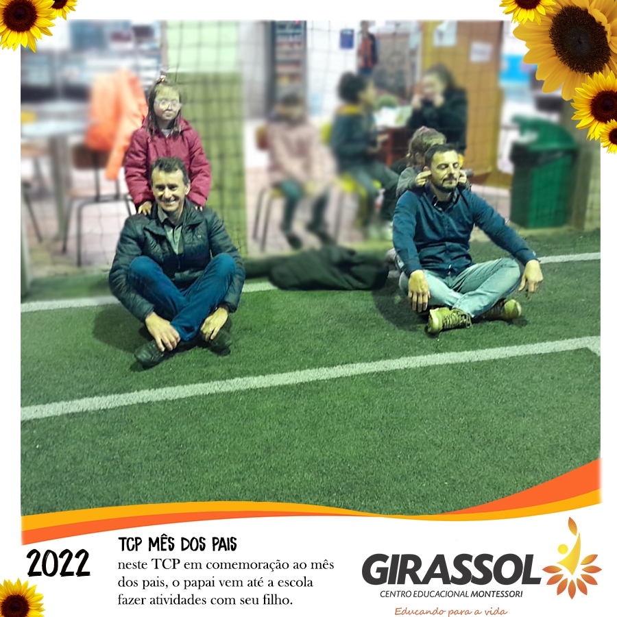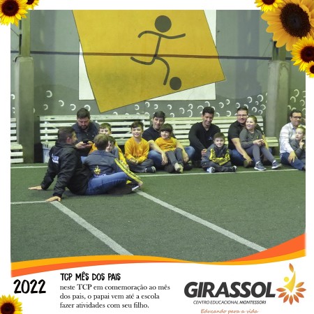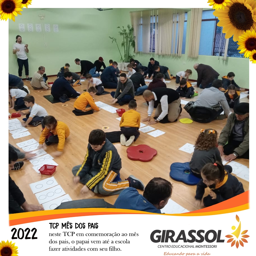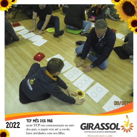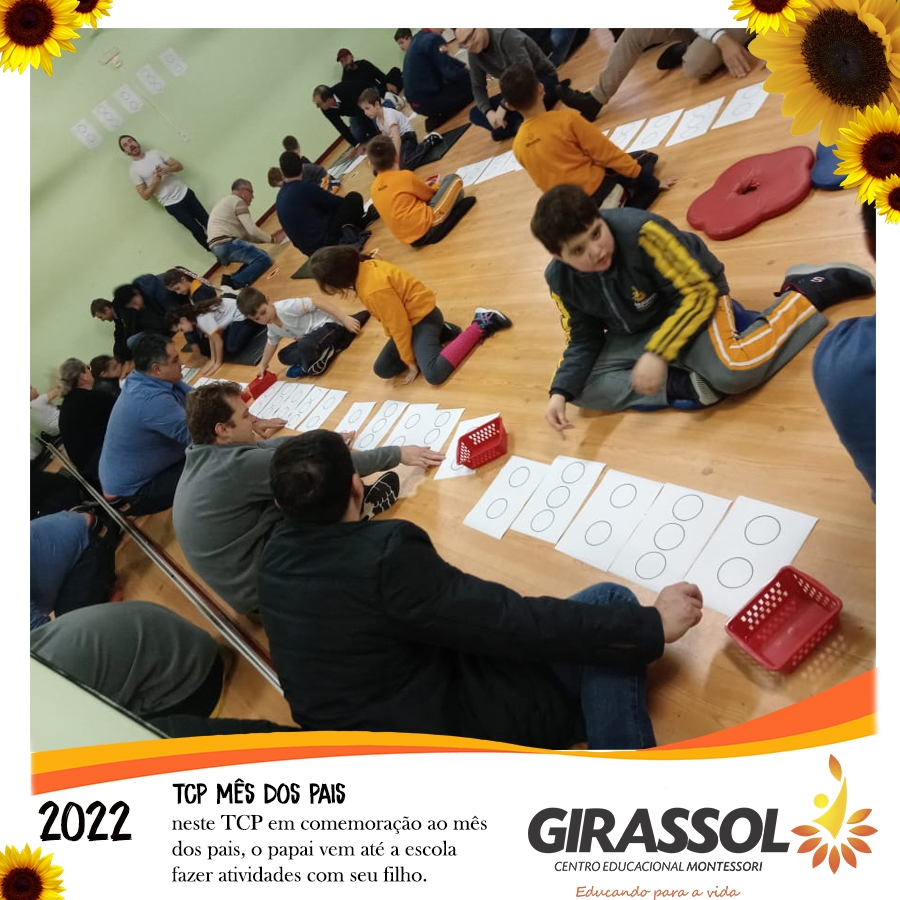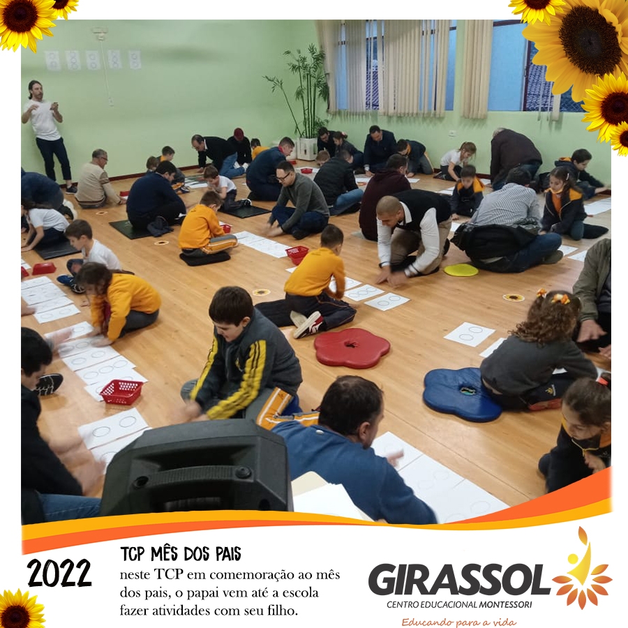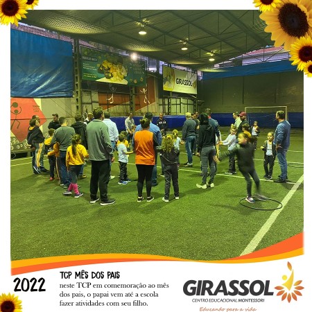Com o objetivo de proporcionar um momento em família e também para que a família conheça melhor a metodologia Montessori e a rotina da criança em sala de aula nosso segundo TCP (Trabalho Conjunto com Pais) do ano de 2022 foi realizado com enfoque nos papais onde cada pai em homenagem ao seu dia pôde estar com seu filho realizando atividades apresentadas pelos professores de aulas extras. A atividade foi pensada com o objetivo de proporcionar um momento especial entre pais e filhos!
