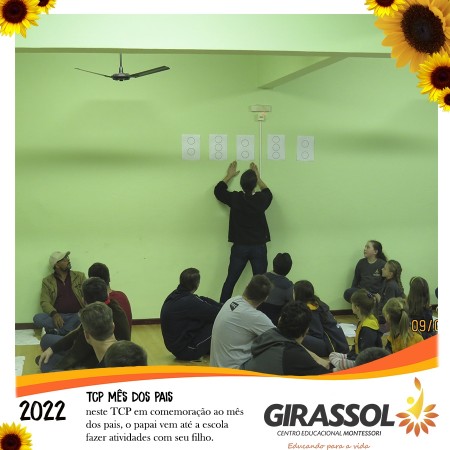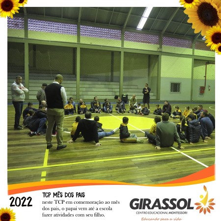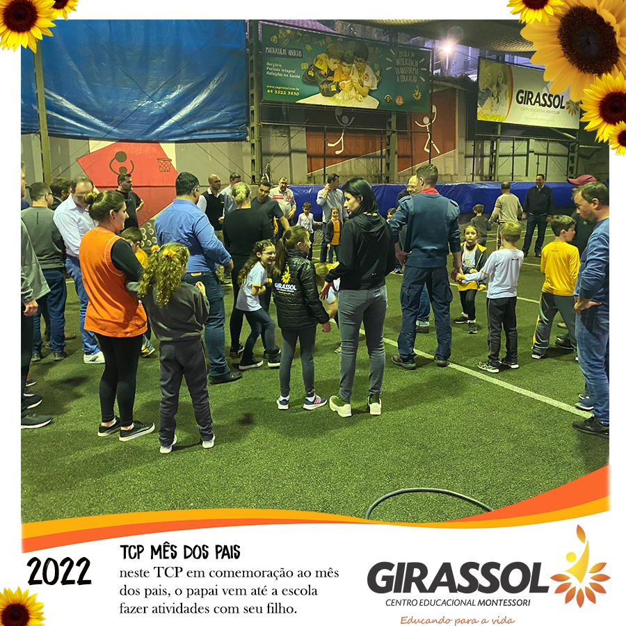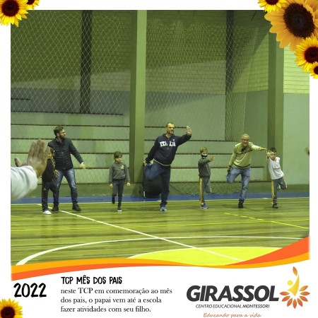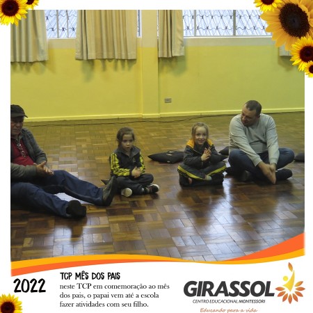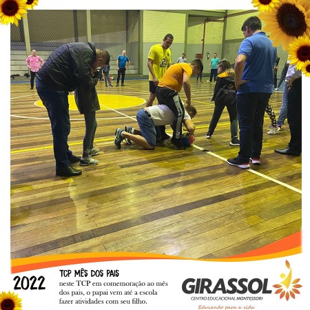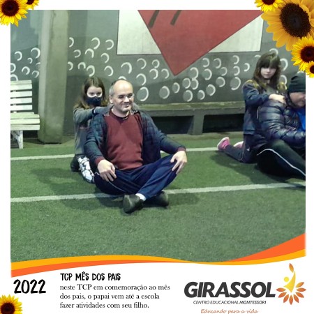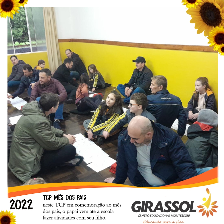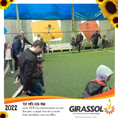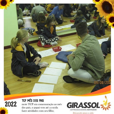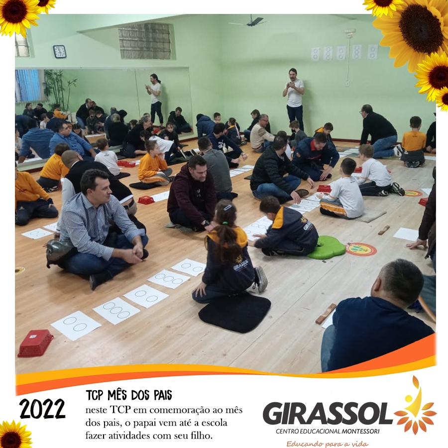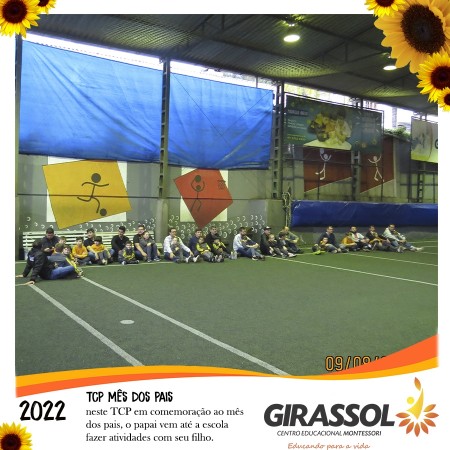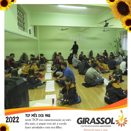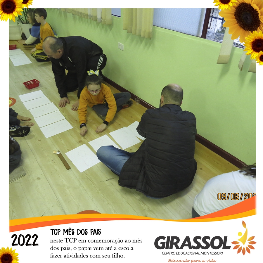 Com o objetivo de proporcionar um momento em família e também para que a família conheça melhor a metodologia Montessori e a rotina da criança em sala de aula nosso segundo TCP (Trabalho Conjunto com Pais) do ano de 2022 foi realizado com enfoque nos papais onde cada pai em homenagem ao seu dia pôde estar com seu filho realizando atividades apresentadas pelos professores de aulas extras. A atividade foi pensada com o objetivo de proporcionar um momento especial entre pais e filhos!