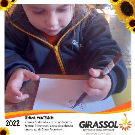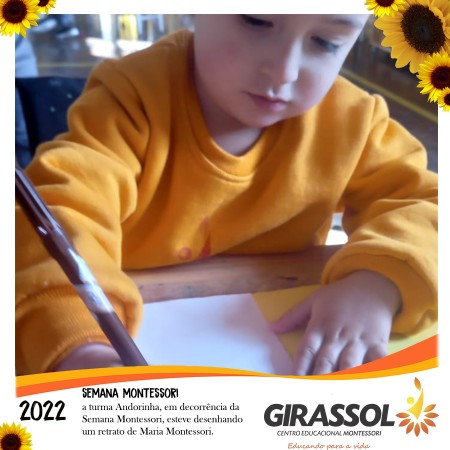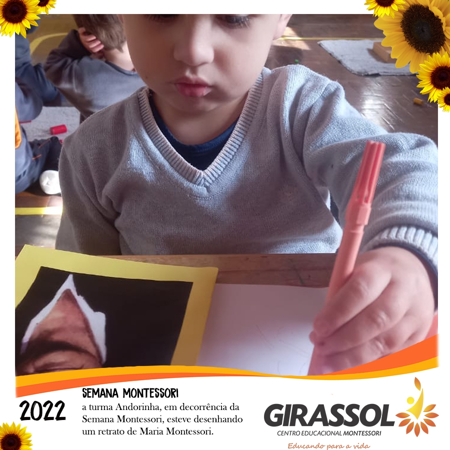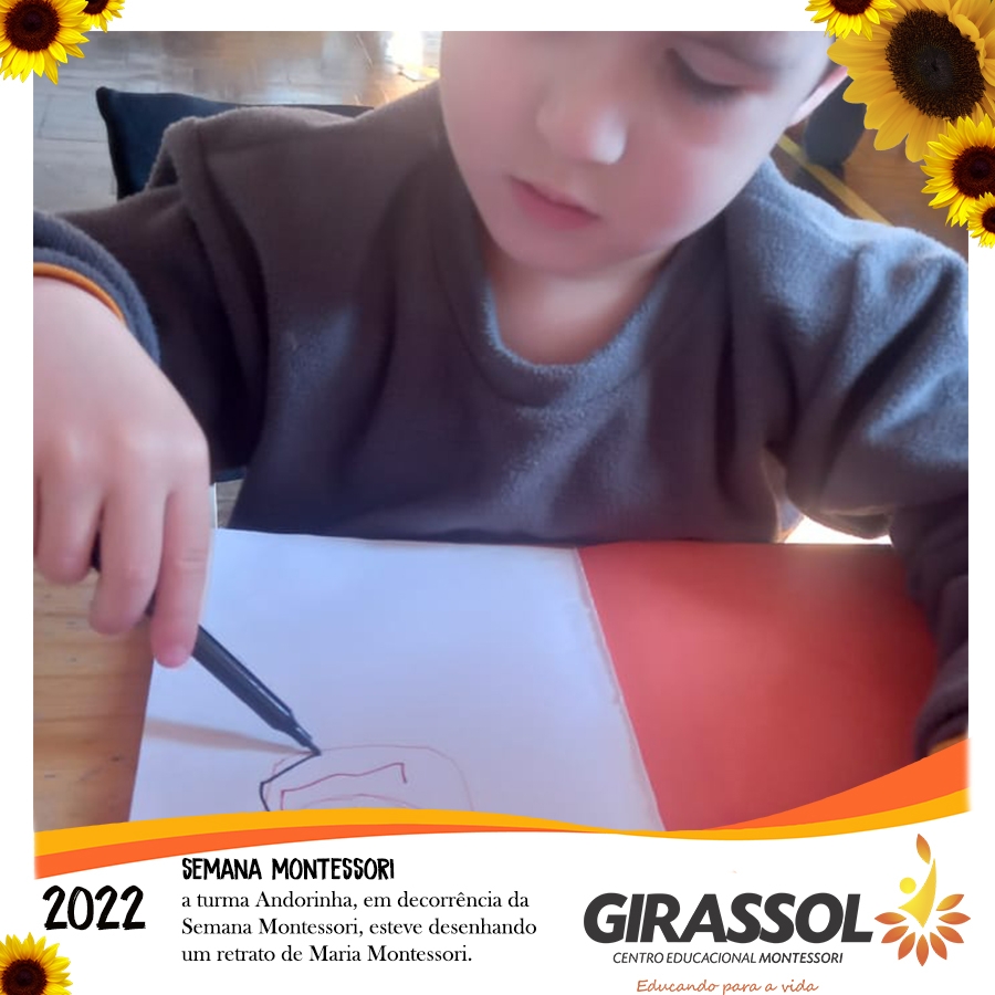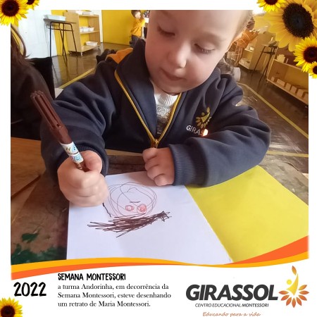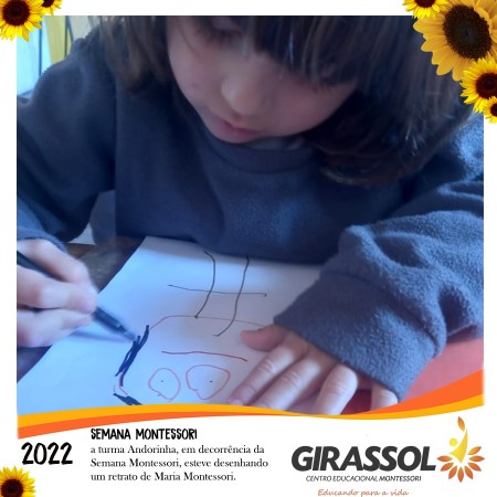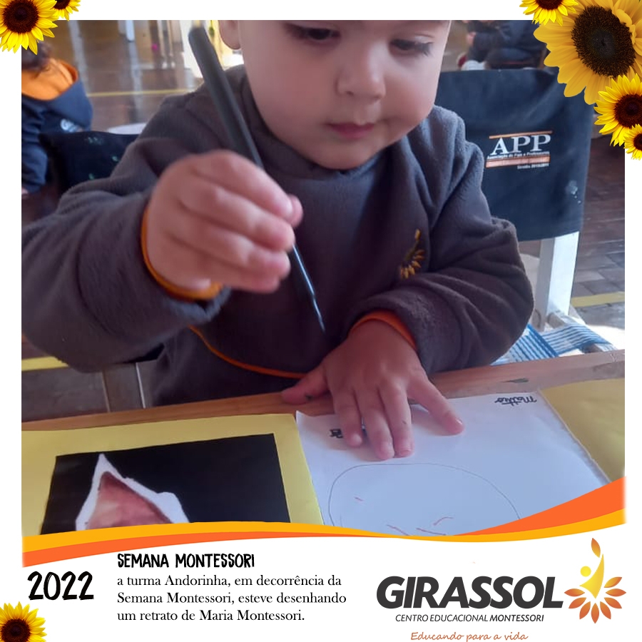 Na Semana Montessori realizada na escola as professoras relacionaram as atividades com Maria Montessori, a fim de mostrar as crianças quem foi essa educadora e o que ela fez em sua vida. Os pequenos da turma Andorinha estiveram desenhando um retrato de Maria Montessori!