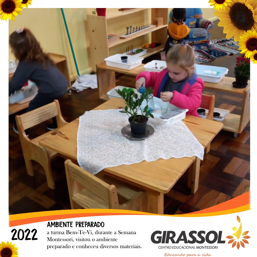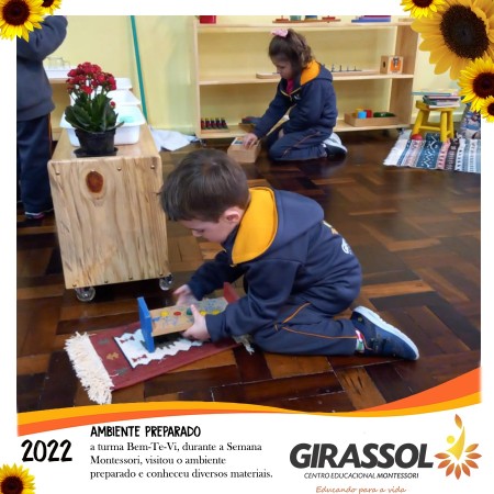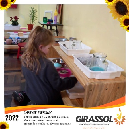 Nós estamos falando de uma ”Escola Montessori“, do Centro Educacional Girassol, onde aplicamos desde 1990 o sistema educacional criado por Maria Montessori.