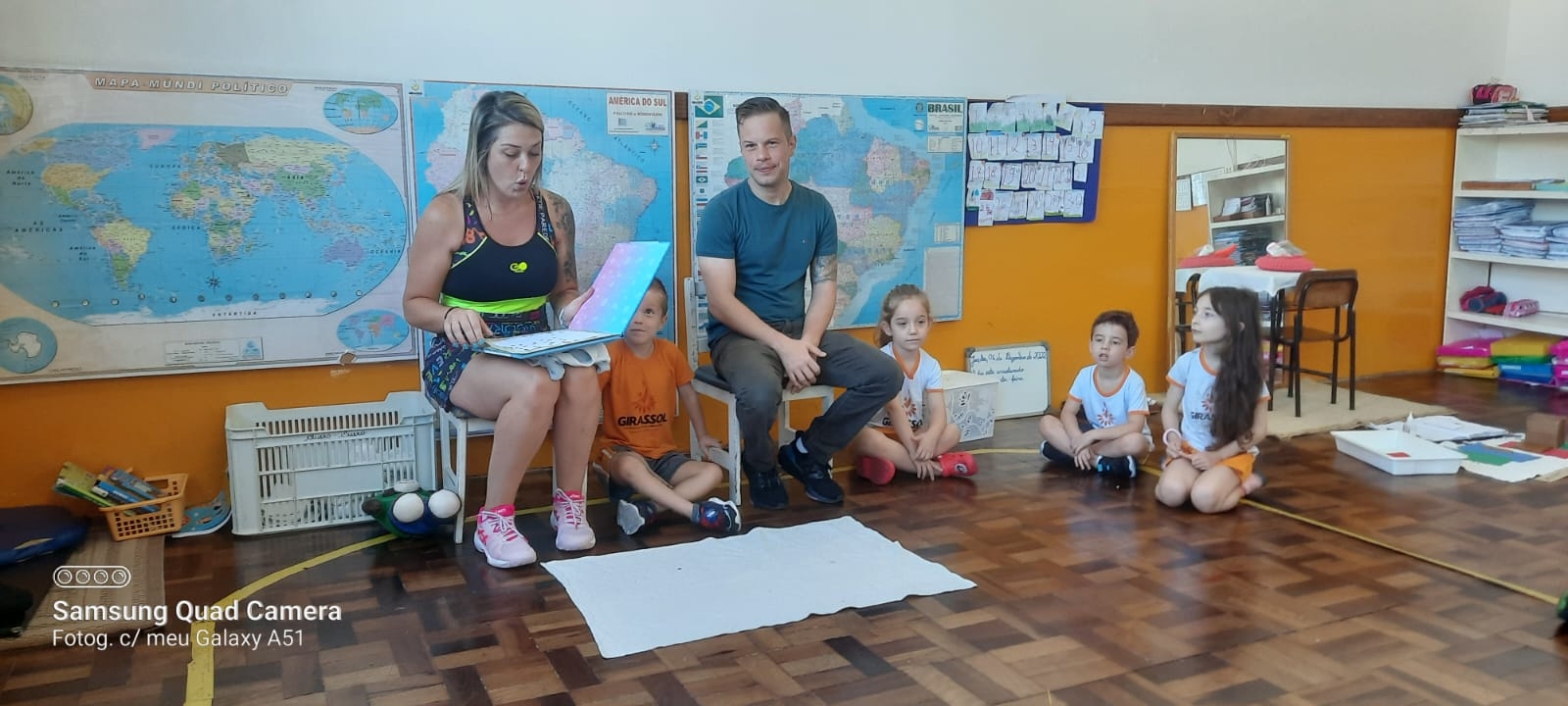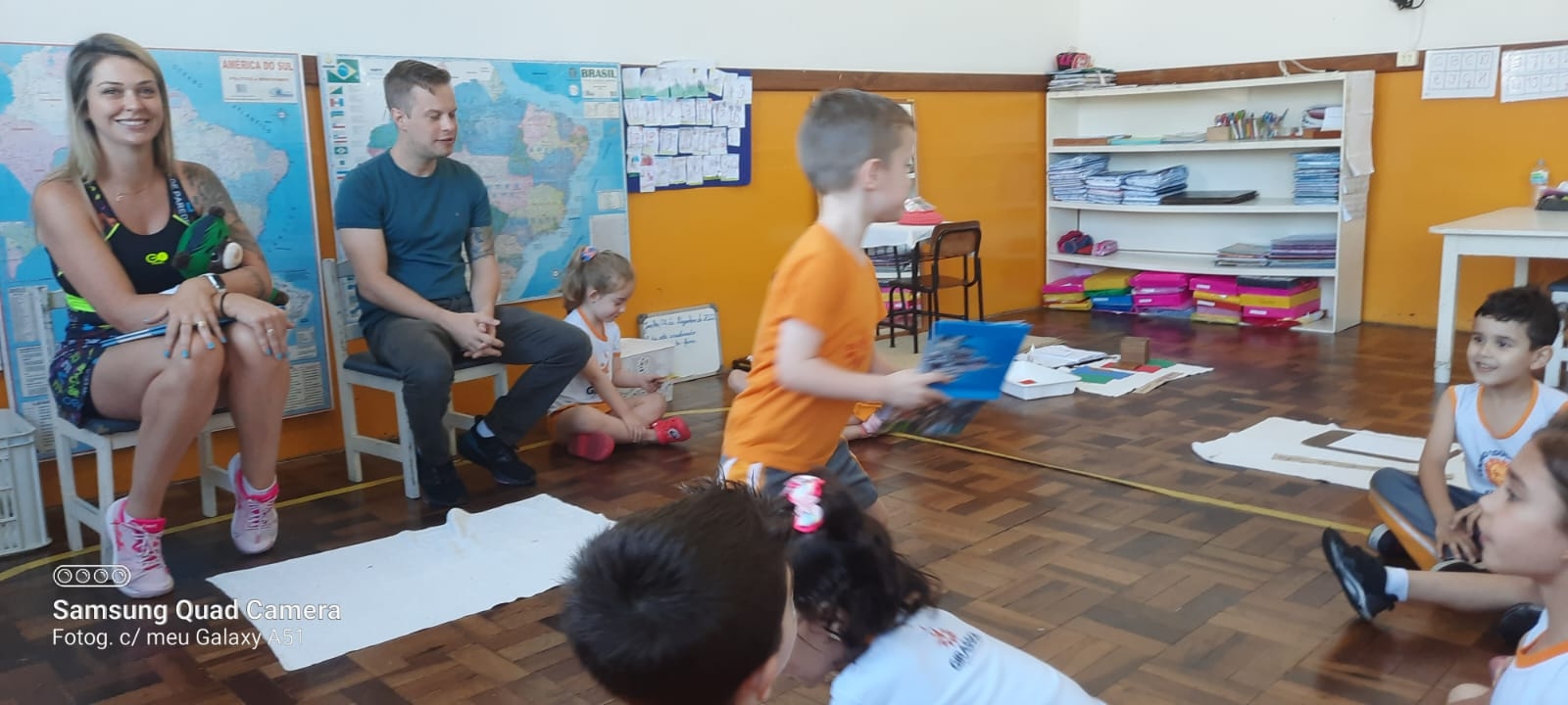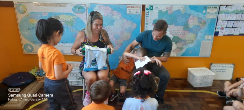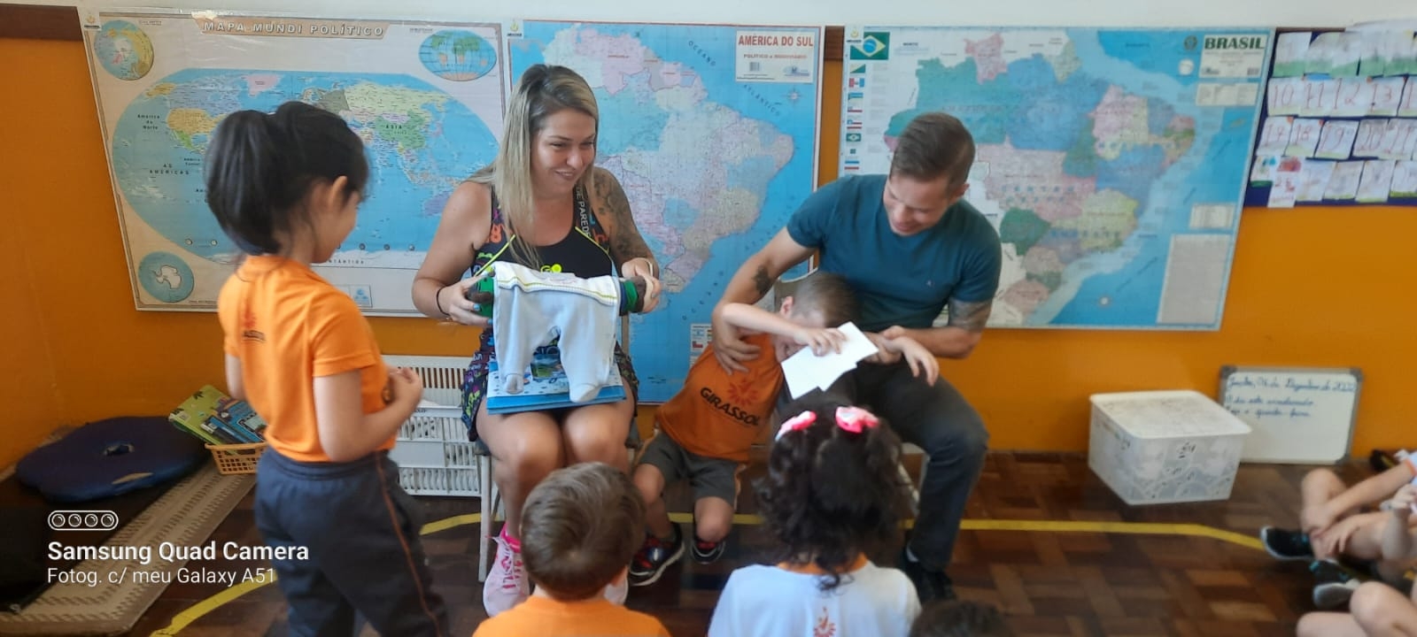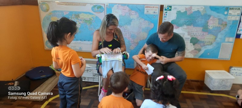 Nossa escola realiza um trabalho intenso em parceria com as famílias. Este ano as turmas das alfabetizações estão fazendo um projeto lindo que traz o papai e a mamãe para dentro da sala de aula. Um dia da semana os papais vêm até a escola para contar um pouquinho da história da vida de seu filho. Desta vez a mamãe e o papai do amigo Afonso estiveram contando uma linda história para a turma Quero-Quero. A presença da família cria na memória das crianças momentos de alegria e felicidade, além de orgulho e admiração.