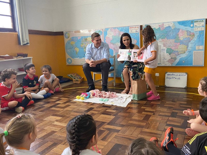 Nossa escola realiza um trabalho intenso em parceria com as famílias. Este ano as turmas das alfabetizações estão fazendo um projeto lindo que traz o papai e a mamãe para dentro da sala de aula. Um dia da semana os papais vêm até a escola para contar um pouquinho da história da vida de seu filho. Na última semana a mamãe e o papai da amiga Cecília estiveram contando uma linda história para a turma Quero-Quero. A presença da família cria na memória das crianças momentos de alegria e felicidade, além de orgulho e admiração.