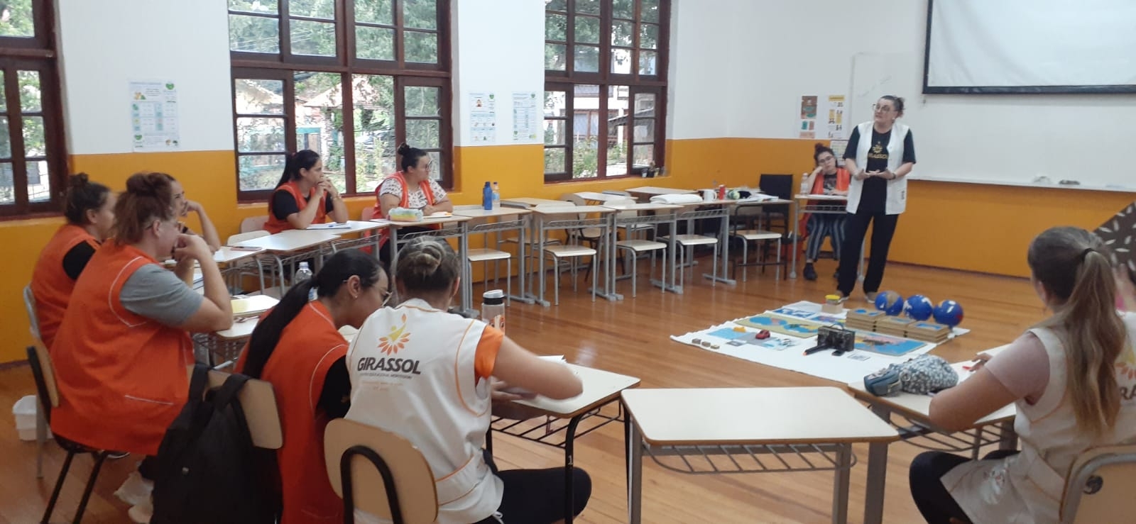 O Projeto de Formação Continuada da Equipe Girassol tem como objetivo a capacitação da equipe e o aperfeiçoamento das práticas montessorianas. Neste ano de 2023 após um planejamento da direção, orientação pedagógica e Consultora Montessori os encontros iniciaram nesta semana com os estudos de Educação Cósmica com a equipe de 3 à 6 anos. Semanalmente os grupos terão a oportunidade de estudar, reciclar seus conhecimentos e trocar experiências, sempre com a coordenação da Formadora da equipe Ruht Specht conforme planejamento de cada grupo de Estudos.