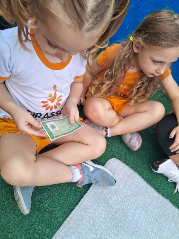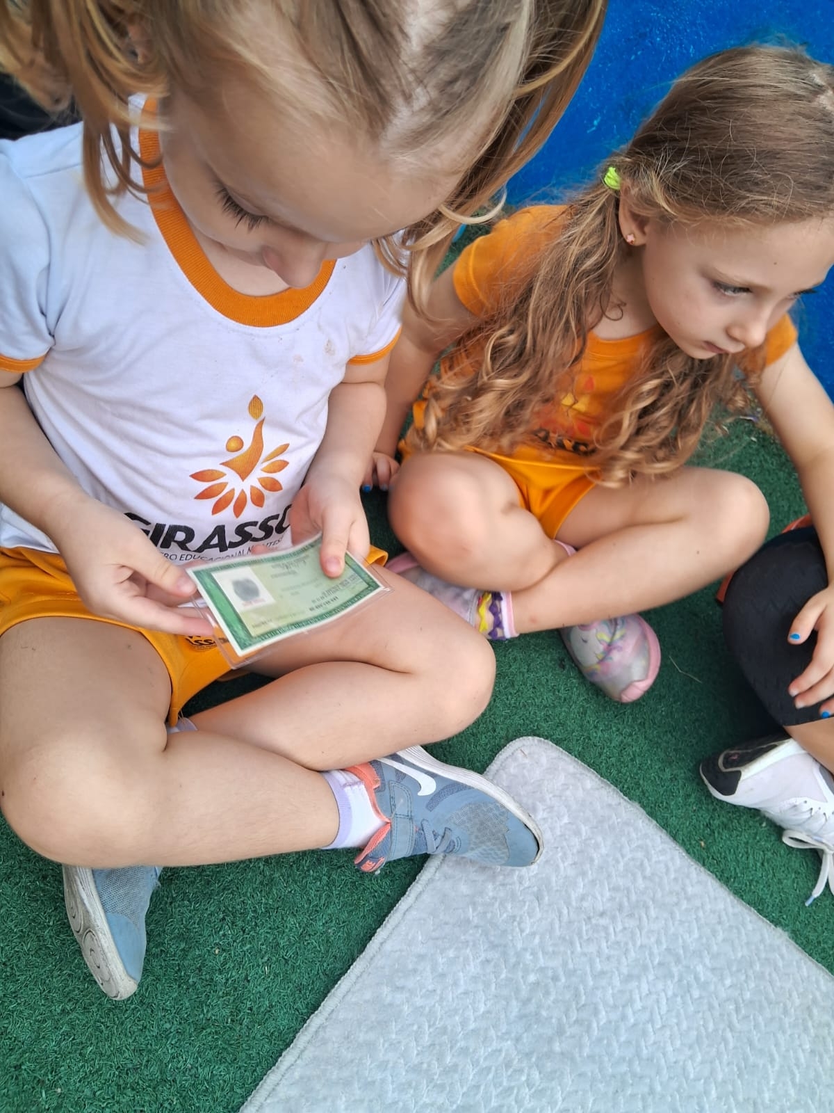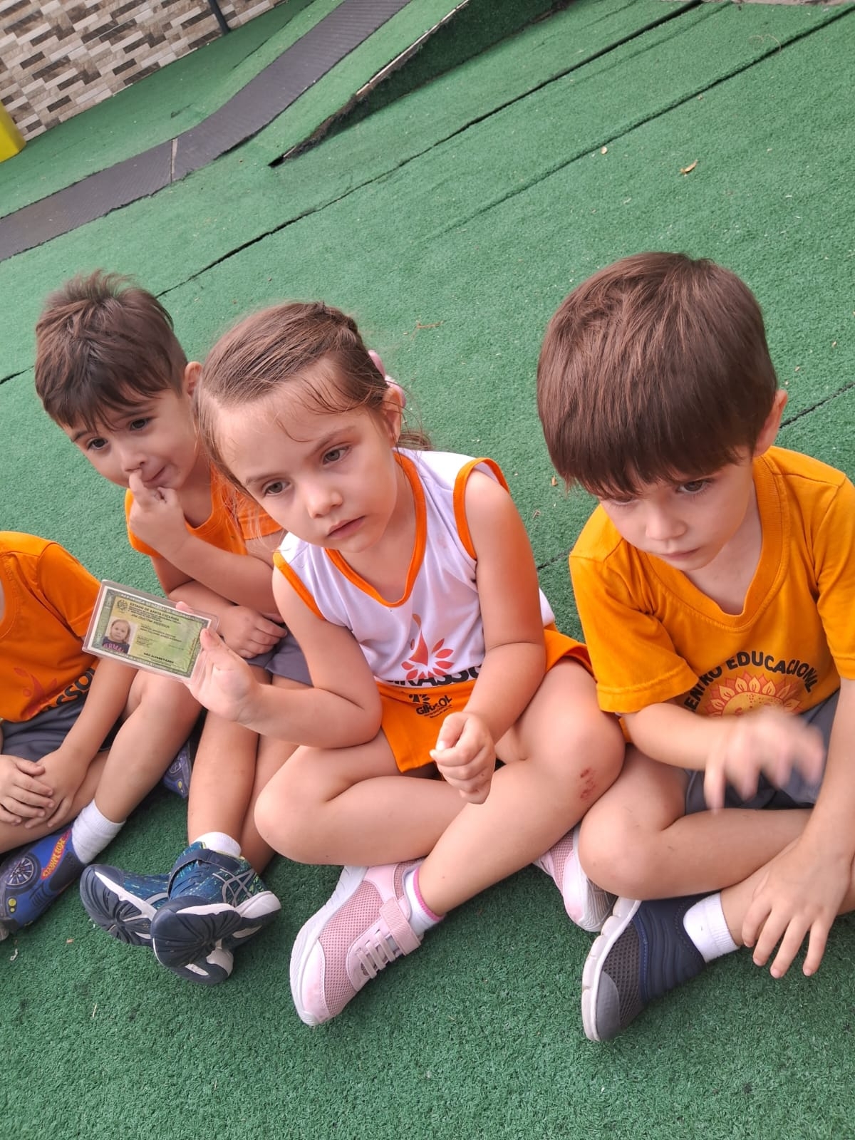 A turma Beija-Flor está trabalhando o projeto Identidade e algumas atividades estão sendo desenvolvidas. Desta vez as educadoras solicitaram para as famílias o envio do documento de cada criança para que os colegas também pudesem compartilhar e se identificar. Também confeccionaram identidades para cada criança, com fotos e impressão digital.