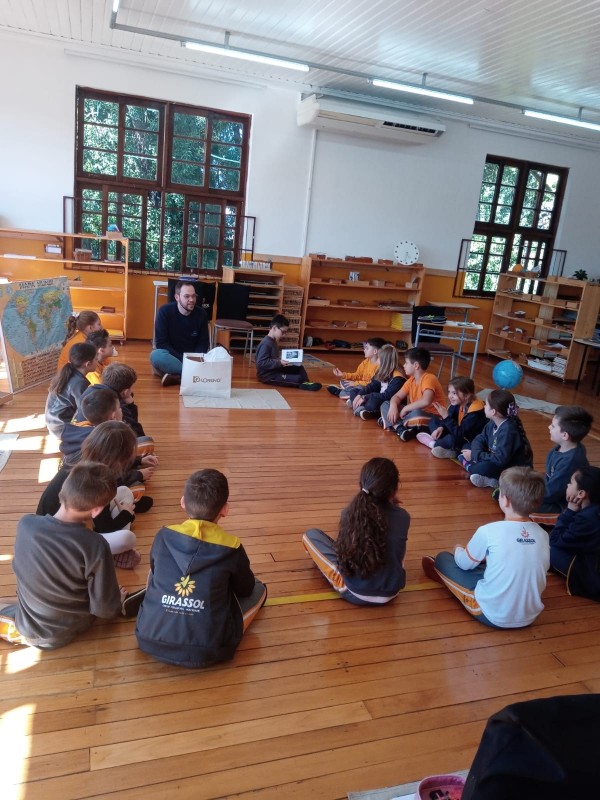 Nós estamos falando de uma ”Escola Montessori“, do Centro Educacional Girassol, onde aplicamos desde 1990 o sistema educacional criado por Maria Montessori.