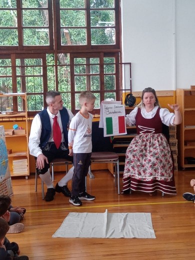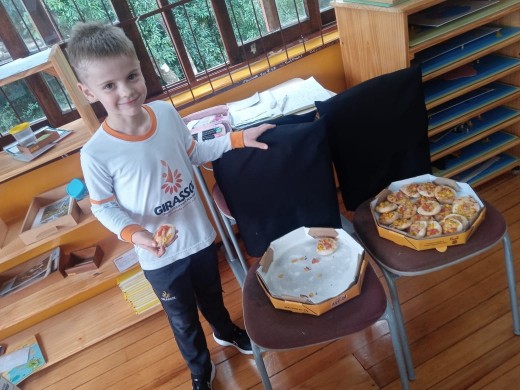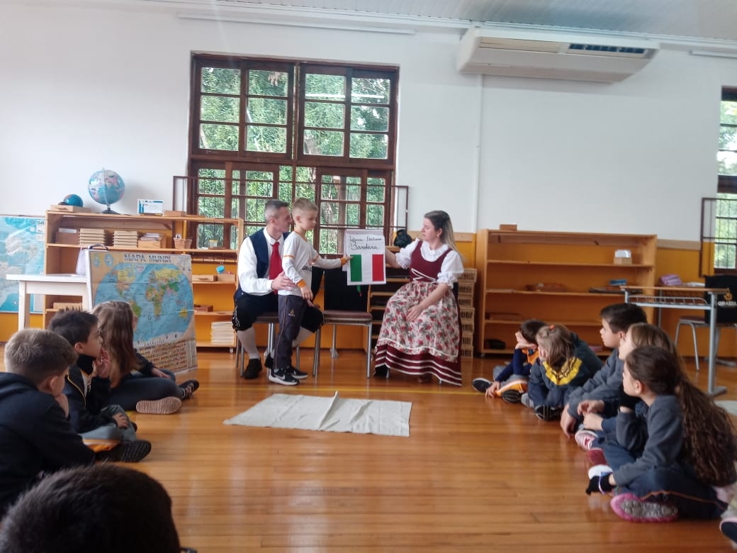 Agradecemos aos Pais do amigo Francisco que estiveram na escola contando uma linda história sobre a Itália e trouxeram pizza como alimentação típica.