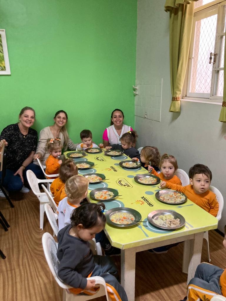 Uma atividade muito especial foi realizada nesta quarta-feira com o objetivo de valorizar as vovós, tão presentes no contexto familiar. A vovó do aluno Theo esteve na escola com a mamãe pata confeccionar uma gostosa receita de vovó, uma deliciosa sopa. Os pequenos amaram a receita e o momento.
