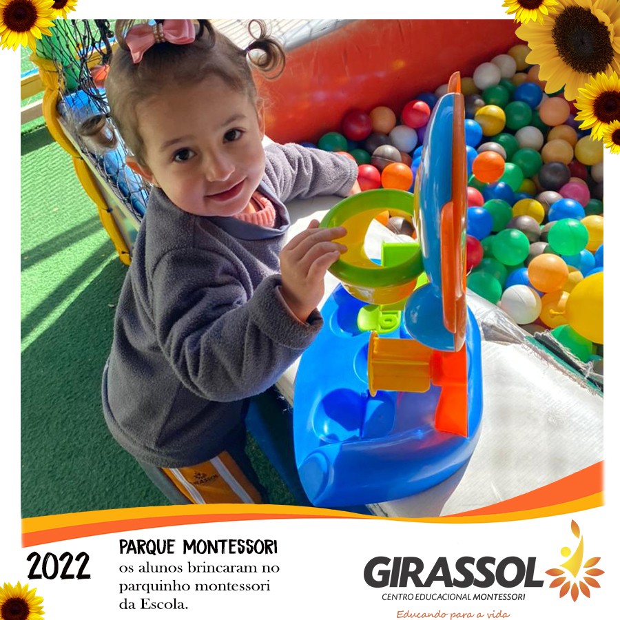 A hora da brincadeira livre na Escola Girassol é nomeada Parque Montessori, onde crianças de várias idades e de di...