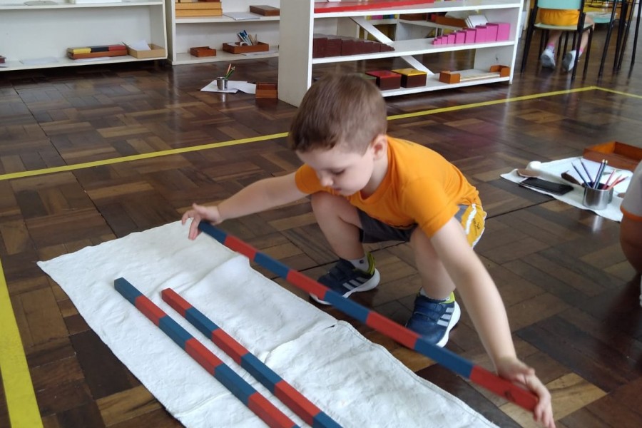 Numa sala de aula montessoriana, pesos, medidas, quantidades e demais conceitos matemáticos são trabalhados com o a...