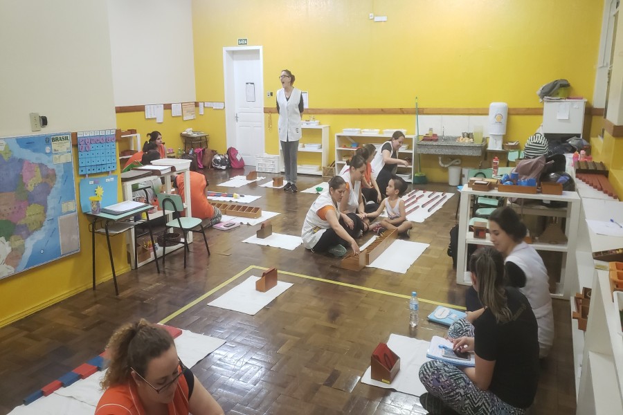 Com a coordenação da consultora Montessori Ruth Specht toda segunda-feira é realizado o treinamento in...