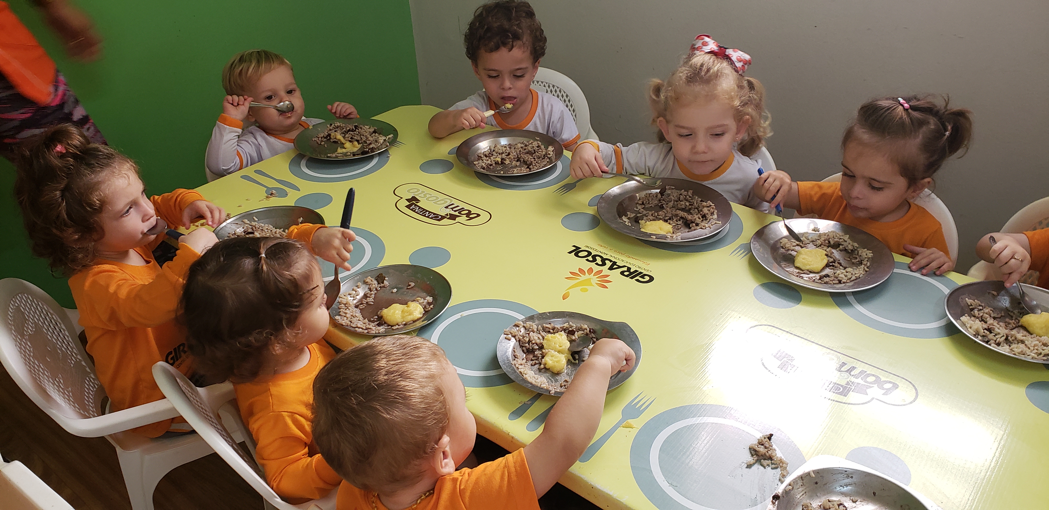 Comer corretamente também pode ser ensinado aos pequenos, e essa é uma atividade muito estimulada no Girassol – C...
