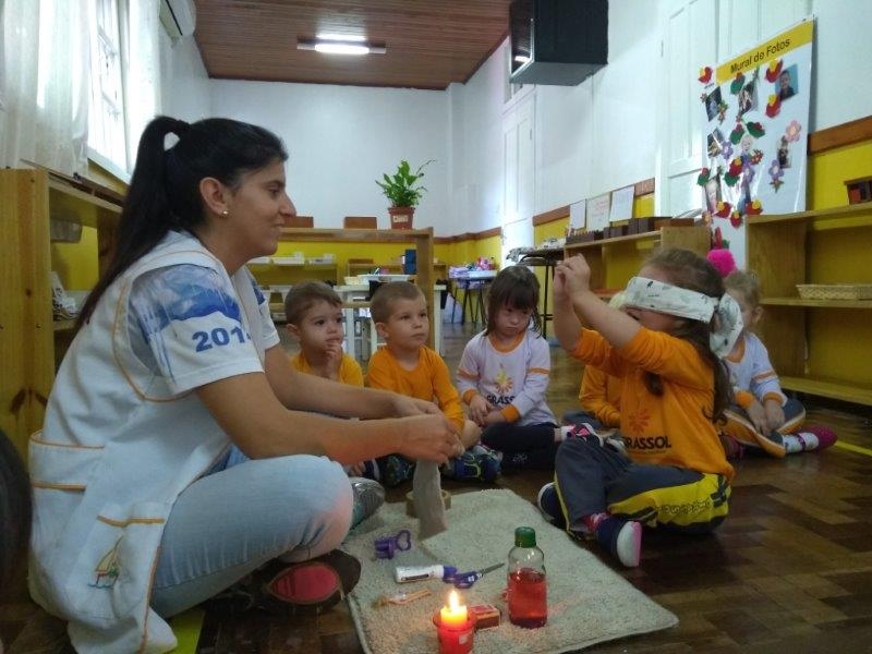 Quando se trabalha o corpo humano, trabalha-se as sensações e os órgãos dos sentidos. Nosso método possibilita que todas as salas de aulas sejam sensoriais, pois os materiais montessorianos tem como base a aprendizagem pelos sentidos. Contudo as professoras sempre criam atividades diferenciadas para aumentar a percepção do aluno trazendo mais momentos de aprendizagem. Desta vez as professoras da turma Bem-Te-vi proporcionaram a atividade para que a criança descobrisse os objetos no saquinho de esterognóstico e descobrisse quem era o colega que estava a sua frente.  Uma divertida aprendizagem!
