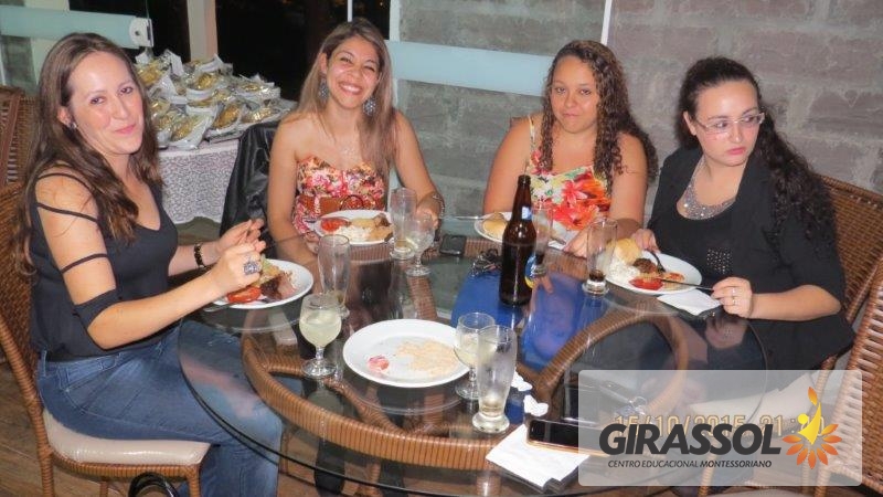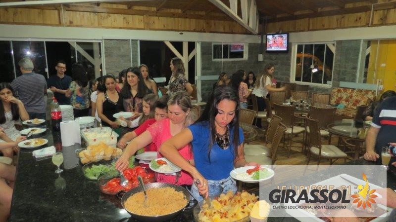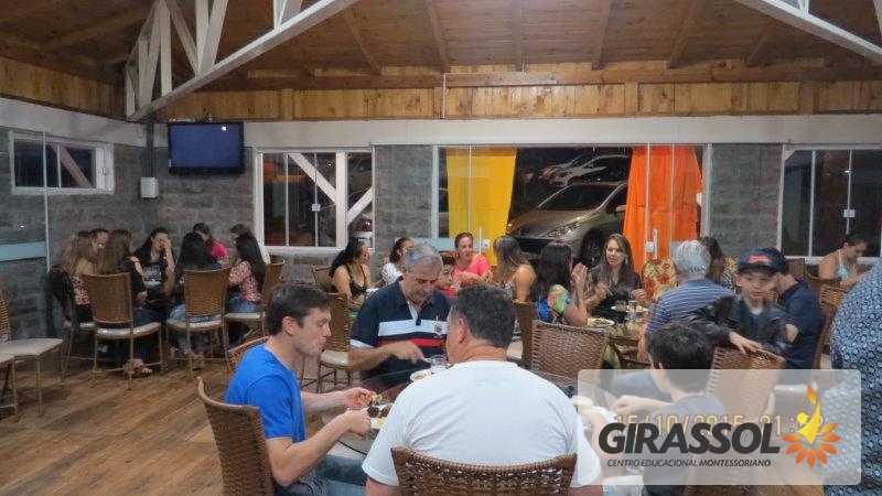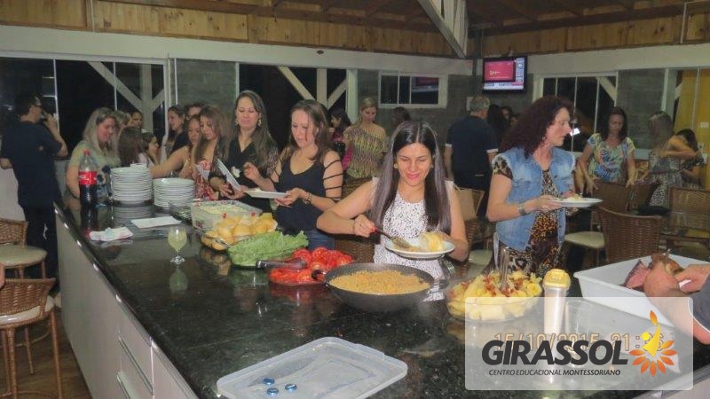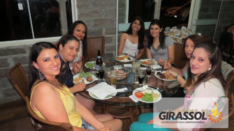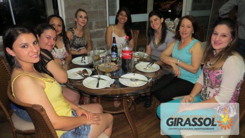 A Direção do Girassol - Centro Educacional Montessori promoveu um jantar de confraternização aos profissionais da instituição em homenagem ao Dia do Professor na noite de 15 de Outubro. A data foi escolhida por ser exatamente o dia da comemoração e foi um momento muito especial como uma forma de reconhecer o belo trabalho que todos fazem pela educação das crianças. Todos foram recebidos com muito carinho na casa de Pedra da Sede do Clube 10 de Maio e aproveitaram o momento para descontrair com os colegas de trabalho. Na oportunidade o presidente da APP da escola, Dr. Eleandro Brustolin e sua esposa Aline Brustolin estiveram presentes representando a entidade e apoiando o evento. Todos receberam uma lembrança da direção da escola. Entende-se que momentos como este contribuem para o fortalecimento e união da equipe relata a Direção.