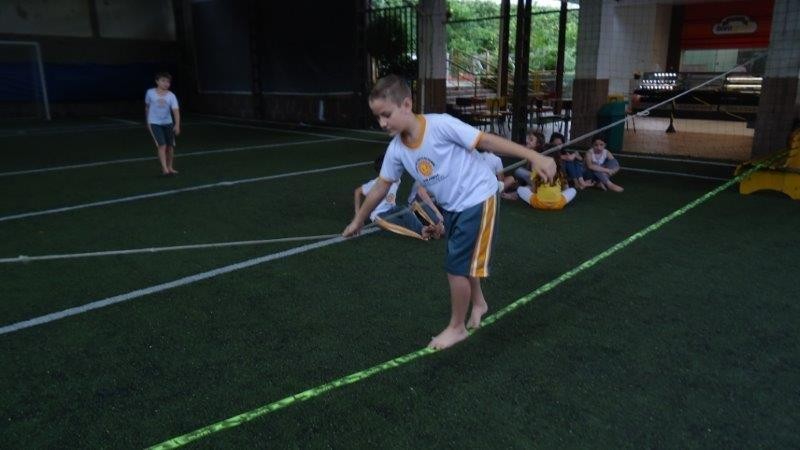 Slackline é um esporte realizado sobre uma fita elástica esticada entre dois pontos fixos, o que per...